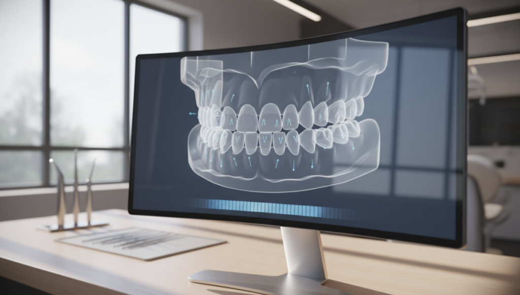 シュアスマイルでは、スキャンしたデータをもとに、現在の歯並びから治療完了時の歯並びまでをコンピューター上で視覚化できます。治療前に「どのように歯が動いていくのか」「最終的にどんな歯並びになるのか」を確認できるため、患者さんの不安を軽減しながら治療を進められます。